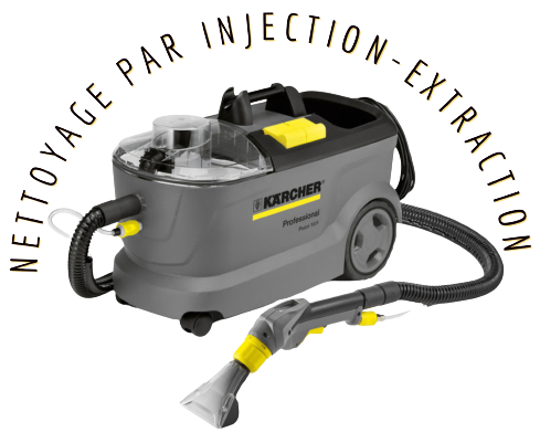 La méthode d'injection-extraction est une technique de nettoyage qui consiste à pulvériser un mélange d'eau chaude et de détergent sur le tissu du canapé en tissu. Ensuite, la solution est immédiatement aspirée à l'aide d'une machine à injection-extraction, qui pénètre en profondeur dans les fibres du tissu pour éliminer toutes les saletés, les allergènes et les acariens.